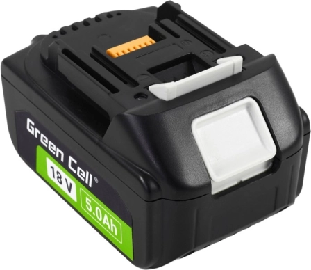 Megbízható GREEN CELL 18 V 5 Ah csereakkumulátor a MAKITA LXT rendszerhez, nagy teljesítménnyel, hosszú üzemidővel és tökéletes kompatibilitással Makita szerszámokkal és töltőkkel. A minőségi lítiumion cellák, a tartós felépítés és a töltöttségjelző révén stabil működésre számíthat memóriaeffektus nélkül, akár 1000 töltési ciklus élettartammal.