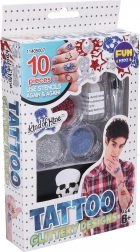 Alkoss saját, egyedi mintákat ezzel a fiúknak készült ideiglenes csillámtetováló készlettel. Tartalmaz 4 újrahasználható sablont, 3 féle csillámport, ragasztót, ecsetet és útmutatót – könnyed szórakozás 6+ éves gyerekeknek.