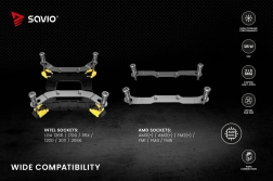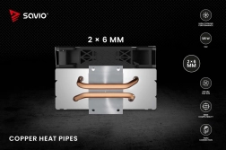 A Savio Frost X2 processzor hűtő két 6 mm átmérőjű réz hőcsővel van felszerelve, amelyek közvetlen kapcsolatban vannak a processzor felületével. Ez a dizájn lehetővé teszi a gyors hőátadást az alumínium radiátorba. Az optimalizált radiátor bordázat támogatja a hatékony légáramlást, hozzájárulva az alacsony üzemi hőmérsékletek fenntartásához a CPU-nál.