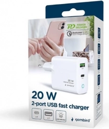 Kompakt hálózati töltő USB‑C és USB‑A dupla porttal, amely 20 W teljesítményt kínál a gyorstöltéshez telefonokhoz és tabletekhez. Támogatja a USB Power Delivery (PD) és a Quick Charge 3.0 szabványokat, így hatékonyan és biztonságosan tölti eszközeit. A praktikus LED visszajelző jelzi a tápellátás állapotát, a letisztult fehér, minimalista dizájn pedig bármely konnektorhoz illik.