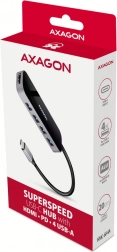 Az AXAGON márkájú többportos USB-C hub egyszerű és gyors csatlakoztatást biztosít négy USB eszköz és HDMI kijelző számára egyszerre. Ez a hub egyszerű és kompakt dokkolóállomást jelent laptopok számára, például a MacBook Pro-hoz.