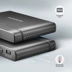 Az univerzális USB‑C 10Gbps AXAGON CLONE MASTER 2 adapter lehetővé teszi két meghajtó egyidejű csatlakoztatását a számítógéphez, és offline klónozást kínál PC nélkül. A 2.5"/3.5" SATA meghajtót közvetlenül a portra csatlakoztatja, az NVMe M.2-t szerszám nélkül csúsztathatja be az adapter házába. Támogatja a UASP, TRIM, S.M.A.R.T., meghajtóról történő rendszerindítás funkciókat, valamint az USB‑n keresztüli tápellátást M.2 és 2.5" meghajtókhoz. A csomag tartalmaz USB‑C ↔ USB‑C kábelt és USB‑A átalakítót a maximális kompatibilitásért.