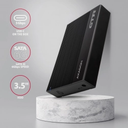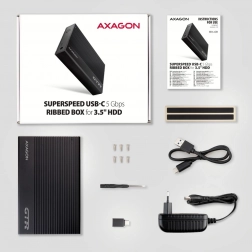 Az AXAGON EE35-GTR külső ház ötvözi az elegáns design-t és a nagy teljesítményt. Bordázott alumíniumból készült, segíti a hűtést és védi a lemezt a sérülésektől. A maximális kényelem érdekében a ház kétirányú USB-C csatlakozót és modern SSD lemezek támogatását kínálja a SATA 6G szabványon keresztül.