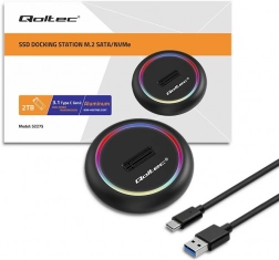 A QOLTEC kompakt M.2 dokkolóállomása univerzális támogatást kínál NVMe és SATA interfészű SSD-khez, nagy sebességű, akár 10 Gb/s adatátvitellel USB 3.1 Gen2 (USB‑C) kapcsolaton, egyszerű Plug & Play telepítéssel és elegáns RGB világítással. Ideális biztonsági mentéshez, nagy fájlok kezeléséhez és média lejátszásához, akár 2 TB kapacitással és UASP támogatással a gyorsabb, gördülékenyebb működésért.