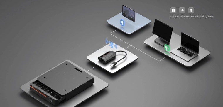 A SUNMI MAX fiók közvetlenül a kioldóval, USB-n vagy Bluetooth-on keresztül is nyitható – ideális mobil vagy ideiglenes munkaállomásokhoz, hagyományos POS nélkül.