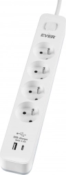 Védje otthonát és irodáját az EVER Protect túlfeszültségvédett hosszabbítóval, négy földelt aljzattal és két USB porttal (USB‑A + USB‑C). A beépített, akár 3,4 A teljesítményű gyorstöltőnek köszönhetően egyszerűen feltöltheti okostelefonját, táblagépét és okosóráját. A biztonságos működést túlfeszültség-védelem, gyermekzár, kétpólusú kapcsoló és a védelem állapotát jelző LED biztosítja.
