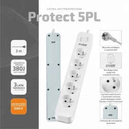 A PROTECT 5PL elosztót biztonságos tápellátásra és a kényes elektronika hatékony túlfeszültség-védelmére tervezték. A minőségi kivitelezésnek és a 3 m hosszú betápkábelnek köszönhetően kényelmesen elér oda, ahol szüksége van rá.