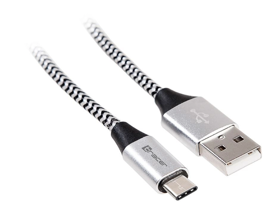 TRACER USB 2.0 TYPE‑C A apa – C apa 1,0 m fekete/ezüst