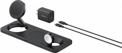 Fekete MagGo 3 az 1-ben töltő vezeték nélküli gyors töltést nyújt 15W teljesítménnyel, összehasonlítható az eredeti Magsafe-el. A töltő könnyű és összehajtható, ami megkönnyíti a hordozhatóságot és biztonságos használatot biztosít az ActiveShield 2.0 technológiának köszönhetően.