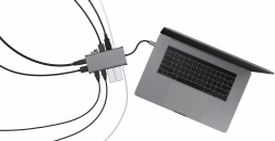 A DisplayPort Alt Mode és a két HDMI kimenet támogatásának köszönhetően akár három kijelzőt is csatlakoztathat, legfeljebb 3840×2160 felbontással 60 Hz-en. A gyors USB 3.0 portok akár 5 Gb/s adatátvitelt biztosítanak, míg a Gigabit Ethernet megbízható és gyors hálózatot nyújt. Az akár 100 W-os Power Delivery gondoskodik a laptop és a kiegészítők töltéséről további adapterek nélkül.