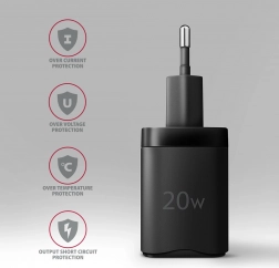 Az univerzális USB‑C töltő 20 W teljesítménnyel ideális modern okostelefonokhoz és táblagépekhez. A Power Delivery 3.0, Quick Charge 4+, PPS, AFC és FCP protokolloknak köszönhetően a lehető legnagyobb töltési sebességet biztosítja széles eszközkörben, beleértve az Apple iPhone 12–15 modelleket, iPadet, Samsungot és Huaweit.
