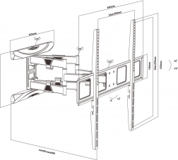 A univerzális fali tartó kompatibilis a vezető márkák tévéivel, mint a Sony, LG, Samsung, Philips, Sharp, Panasonic és még sok más. LCD, LED és OLED televíziókhoz tervezve 100 hüvelykig, ha megérik a VESA szabványt és nem lépik túl a maximális súlyt. VESA szabvány támogatás: A tartó különböző méreteket támogat: 100x200, 200x200, 200x300 és 800x600 mm között. A hosszú, dupla kar széles forgatási lehetőségeket biztosít és szintbe állítás +3/-3° szerelés után.