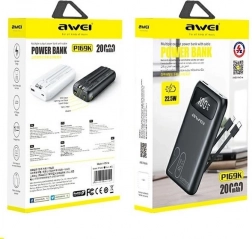 A kompakt 20000 mAh kapacitású AWEI P169K powerbank megbízhatóan feltölti telefonját és táblagépét utazás közben is. 22,5 W gyorstöltést kínál, USB és USB‑C csatlakozókkal, beépített USB‑C és Lightning kábelekkel, valamint LCD kijelzővel, amely pontosan mutatja a hátralévő energiát. Természetes a biztonsági védelem túlfeszültség és rövidzárlat ellen.