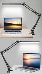 A hosszú, csuklós kar és az elfordítható panel lehetővé teszi a munkafelület célzott megvilágítását – ideális íráshoz, olvasáshoz és számítógépes munkához.