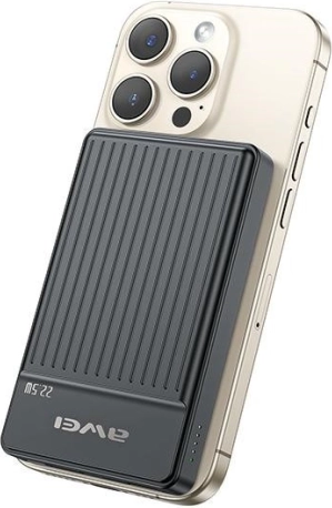 Mágneses vezeték nélküli powerbank 10000mAh, töltés akár 22,5W, kompakt és könnyű utazni, fekete.