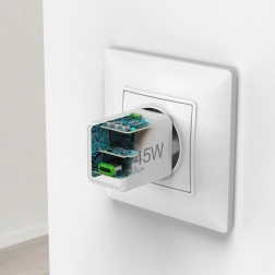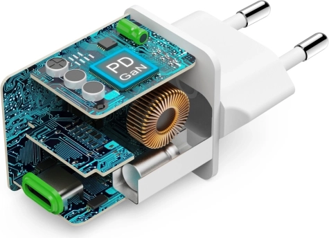 A GaN technológia minimalizálja a hőtermelést, ami hatékony és biztonságos töltést biztosít. A töltő intelligens chipkészlettel van felszerelve, amely védi a túlfeszültségtől és a rövidzárlattól.