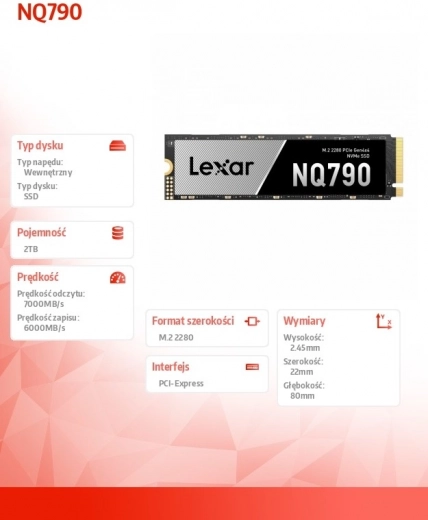 Lexar NQ790 PCIe 4.0 SSD a legmagasabb teljesítményre készült, ideális játékhoz és más nagy igénybevételű alkalmazásokhoz. Akár 7000/6000 MB/s olvasási/írási sebességével lépést tart a munkájával, miközben a kiváló minőségű NAND memória révén megbízhatóságot nyújt. A modern NAND flash a megbízhatóságot és a tartósságot biztosítja, amelyre számíthat.
