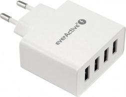 EverActive SC-400 robusztus hálózati töltő négy USB-porttal és iQ Smart Charging technológiával. Mindenütt beválik, ahol a hálózati aljzatok száma jelentősen korlátozott, és nem lehet hagyományos egyportos hálózati töltőt használni több eszköz egyidejű töltésére.