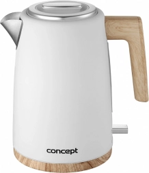 Fedezze fel a szépséget és a funkcionalitást egyben. A CONCEPT ELWOOD vízforraló fehér színben, fa akcentusokkal remekül illik modern és hagyományos konyhákba egyaránt. A 1,7 l űrtartalomnak köszönhetően gyorsan készíthet vizet az egész család számára, míg a rejtett fűtőspirál megkönnyíti a tisztítást és minimalizálja a vízkő lerakódását.