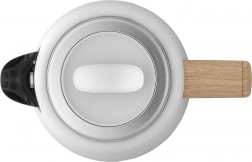 A matt fehér felület fa elemekkel tiszta és időtálló hatást kelt. A vízforraló minden konyha stílusos kiegészítője lesz.
