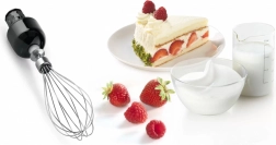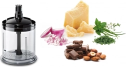 A csomag része egy aprító feltét és habverő feltét is, amelyekkel széles skálájú finom ételeket készíthet. A selymes szószoktól a tökéletesen felvert tejszínig – mindez lehetséges ezzel a sokcélú mixerrel.