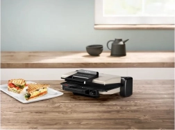 Használható zárt pozícióban kontaktgrillként, nyitottan asztali grillként, vagy félig nyitva felső és alsó fűtéssel – széleskörű lehetőségeket kínál.