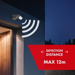 Az érzékelő 180°-os érzékelési szöggel rendelkezik, és nappal és éjszaka egyaránt működik az érzékeny szürkületi érzékelőnek köszönhetően.