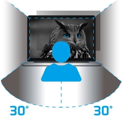 A képernyővédő szűrő maximális védelmet nyújt a kényes információk számára a számítógép használata közben. A fejlett mikrorácsos technológiának köszönhetően a képernyő tartalma csak azok számára látható, akik közvetlenül előtte ülnek. 30°-os és szélesebb szögből nézve a képernyő feketévé válik, így adatai mások számára láthatatlanná válnak.