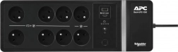 Nyolc E típusú aljzat a rugalmas csatlakoztatáshoz: 6 aljzat akkumulátoros tartalékkal és túlfeszültség-védelemmel a kulcsfontosságú eszközöknek, és 2 aljzat csak túlfeszültség-védelemmel a kevésbé kritikus fogyasztóknak.