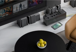 A beépített USB‑A és USB‑C portok kényelmes és gyors töltést tesznek lehetővé telefonokhoz, tabletekhez vagy fejhallgatókhoz külön töltő nélkül.