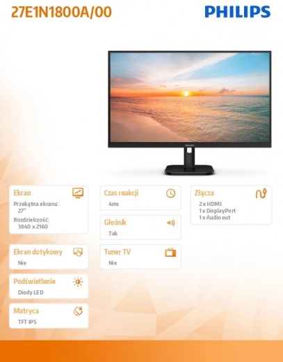 Ideális választás munkához és szórakozáshoz: a 27"-es IPS kijelző UHD 4K felbontással kivételes részletgazdagságot, pontos színeket és stabil kontrasztot nyújt a betekintési szögtől függetlenül. A két HDMI és egy DisplayPort révén könnyedén csatlakoztathat laptopot, PC-t és multimédiás eszközöket.