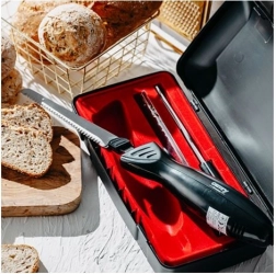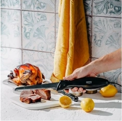 Camry Premium elektromos kés úgy lett tervezve, hogy kényelmet és biztonságot nyújtson az élelmiszerekkel való munkavégzés során. A két különböző rozsdamentes acél penge segítségével könnyedén hasíthat különféle termékeket, mint például hús, kenyér vagy zöldség. A penge rozsdamentes, ami hosszú élettartamot biztosít.