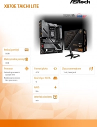 Az ASRock X870E Taichi Lite a maximális átviteli kapacitásra és a hosszú távú megbízhatóságra készült. A legújabb PCIe 5.0 a grafikus kártyákhoz és a Blazing M.2 felszabadítja a leggyorsabb SSD‑k potenciálját, míg az USB4 Type‑C (40 Gb/s) felgyorsítja a munkát a külső meghajtókkal, dokkokkal és kijelzőkkel. A Wi‑Fi 7 (802.11be) és az 5GbE LAN villámgyors, stabil hálózati kapcsolatot biztosít alacsony késleltetéssel.