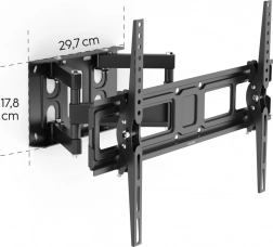 Hama Fullmotion fali tartó ideális választás a televízió biztonságos rögzítéséhez. Teljesen mozgatható karokkal lehetővé teszi az optimális nézési szög beállítását. Támogatja a VESA szabványt akár 600x400 mm-ig.