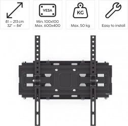 A tartó támogatja a VESA szabványt akár 600 x 400 mm-ig, ami miatt különböző méretű és típusú televíziókkal kompatibilis.