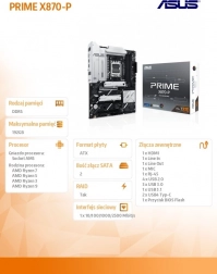 Az ASUS PRIME X870-P megbízható alap a nagy teljesítményű rendszerekhez az AMD AM5 platformon. A robusztus tápellátási felépítésnek, a méretes hűtőbordáknak és az átgondolt bővítőhely-elrendezésnek köszönhetően terhelés alatt is stabilitást nyújt, miközben teret ad a jövőbeni bővítésnek. Az UEFI-ben és szoftverben elérhető intuitív eszközök megkönnyítik a beállítást, a finomhangolást és a rendszerfelügyeletet.