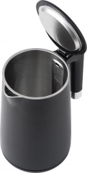 Elektromos vízforraló Maestro ideális napi használatra 1,7 literes kapacitása és 1800 W teljesítménye révén. A lenyűgöző dizájnú készülék hűvös maradó kettős falú kivitelével biztosítja a biztonságot és kényelmet. Teste tartós műanyag anyagból készült, míg belső része kiváló minőségű rozsdamentes acél 18/10 anyagú, amely hosszú élettartamot garantál.