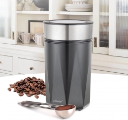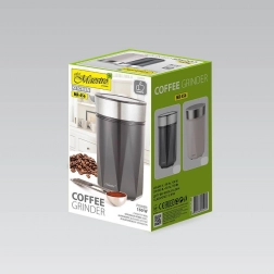 Kompakt MAESTRO elektromos kávédaráló 50 g kapacitással és 150 W teljesítménnyel, amely megbízhatóan darál kávébabot, fűszereket és dióféléket. A rozsdamentes acél kések egyenletes őrlést biztosítanak, a biztonsági fedélzár és a csúszásgátló lábak pedig növelik a biztonságot és a stabilitást. A rozsdamentes acél őrlőcsésze könnyen tisztítható, a kompakt méretek pedig bármely konyhába illenek.