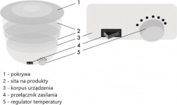 A szárító akár 40 órán át megszakítás nélkül tud működni, ami praktikus, ha nagyobb mennyiségű élelmiszert kell feldolgozni. Magassága 26 cm, a tápkábel hossza 115 cm, ami megkönnyíti az elhelyezést a konyhapulton.