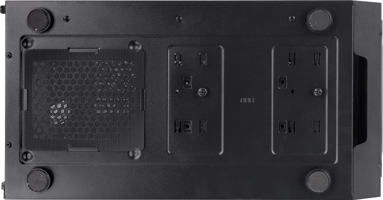 A hátsó falra szerelt csendes 120mm ventilátor biztosítja a friss levegő folyamatos áramlását a házban.
