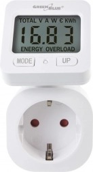 A GREENBLUE GB615 F energiamérő pontosan megjeleníti a feszültséget, áramerősséget, teljesítményt (W), valamint a teljes fogyasztást (kWh) és a költségbecslést. Így könnyen azonosíthatja a nem hatékony készülékeket, és azonnal csökkentheti az áramszámlát és a szénlábnyomot.