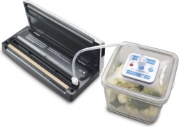 A vákuumozás meghosszabbítja az eltarthatóságot, megvédi a fagyási égéstől és helyet takarít meg. Vákuumfóliázzon tekercsekkel és tasakokkal 30 cm szélességig, vagy használjon vákuumedényeket csatlakoztatható tömlővel; sous‑vide‑hoz is kiváló.