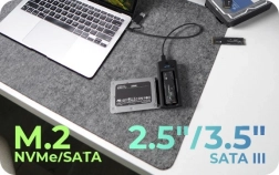 Az állomás lehetővé teszi az M.2 és 2,5" meghajtók tápellátását USB 3.0 vagy Type-C által; kizárólag a 3,5" meghajtók igényelnek külső tápellátást.