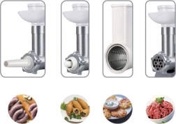 A kolbásztöltőnek és a kebbe-feltétnek köszönhetően házi felvágottakat és keleti különlegességeket készíthet. A nem használt tárcsákat az integrált tárolóban helyezheti el.
