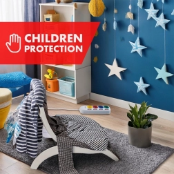 Négy színes aljzat gyermekvédelemmel biztosít biztonságot a gyerekekkel rendelkező háztartások számára, és megkönnyíti az egyes készülékek megkülönböztetését.