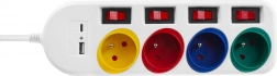 Ezenkívül a hosszabbítókábel két USB porttal (A és C) van felszerelve a gyors és praktikus töltésért különféle eszközök számára, mint például okostelefonok, tabletek vagy digitális fényképezőgépek. A Qualcomm Quick Charge 2.0 támogatásának köszönhetően a töltés még gyorsabb.