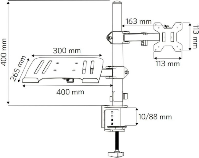 VESA szabvány (75x75 mm és 100x100 mm) szerinti rögzítés biztosítja a legtöbb monitor egyszerű telepítését. Az acél porszórt bevonattal készült masszív szerkezet biztosítja, hogy a tartó stabil és tartós legyen. Ezenkívül az integrált kábelkezelő rendszer segít rendben és rendszerezetten tartani a munkahelyet.