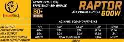 A Raptor tápegység kiemelkedő teljesítménytartaléka az előrehaladott tervezésnek és a kiváló minőségű alkatrészeknek köszönhető. A +12V vonalon hatékonyan generál 600W-ot a CPU és a grafikus kártya táplálásához, míg más vonalakhoz további teljesítményt biztosít egészen 721W összteljesítményig.
