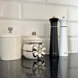 Átgondolt kialakításuknak köszönhetően az őrlők kényelmesen tölthetők a felső gomb és a felső rész lecsavarásával. A fekete és fehér matt felület bármely konyhába illik, és könnyen karbantartható – elég száraz ruhával áttörölni. Remek ötlet stílusos ajándéknak a főzés szerelmeseinek.
