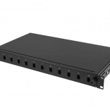 Kihúzható optikai patch panel 19'' rackhez (1U) 12× SC simplex vagy 12× LC duplex kapacitással. Tartós, porszórt bevonatú acél ház, számozott portok, állítható rackfülek és átgondolt kábelmenedzsment 5 bevezetéssel. A csomag tartalmazza a szereléshez és a szálak rendezéséhez szükséges tartozékokat.